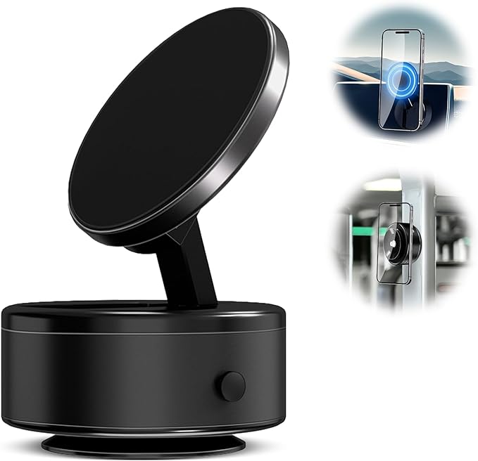 این هولدر از فناوری مکش وکیومی هوشمند استفاده میکند. تنها با یک فشار ملایم، پمپ خودکار فعال شده و گوشی را محکم به سطح صاف میچسباند. اگر سطح مناسب نباشد، دستگاه بهصورت خودکار آزاد میشود. برای جدا کردن هولدر، کافی است دکمه آزادسازی کناری را فشار دهید.